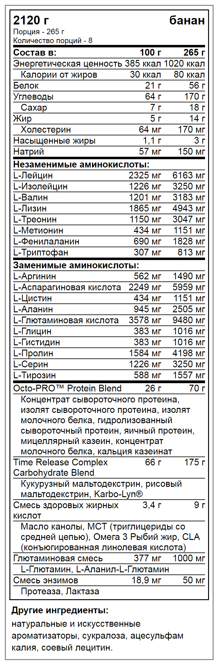 Протеиновая смесь дает эффект медленного высвобождения питательных веществ в течение 6 часов, чтобы Ваши мышцы не испытывали нужду в качественном питании.