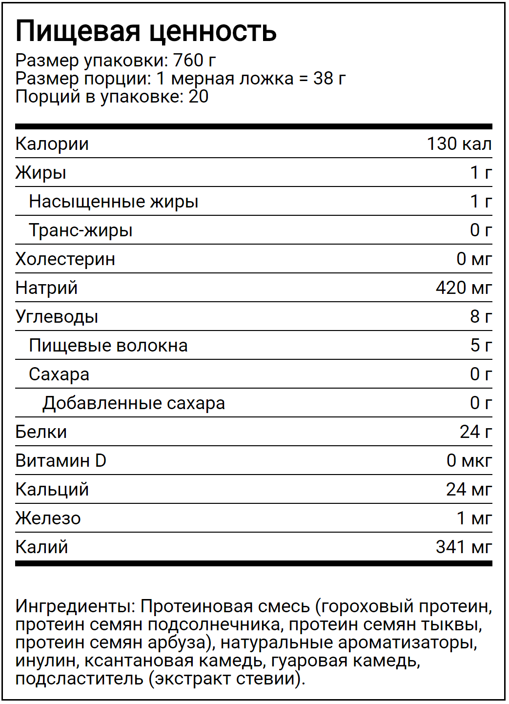- 4 вида белка - гороховый, из семян подсолнечника, тыквы и арбуза;