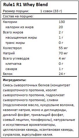 Өздеріңіз білетіндей, ақуыздың бұл түрлері адам ағзасына қажетті өте маңызды, жылдам аминқышқылдарының көзі болып табылады. Сондай-ақ олардың ассимиляциясының жоғары жылдамдығы мен сапасын атап өткен жөн. Сонымен қатар, R1 Whey Blend құрамында май, лактоза және холестерин жоқ.