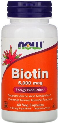 Biotin 5000 mcg-дің тағы бір маңызды міндеті-көмірқышқыл газын біздің ағзамыздың тұқым қуалайтын ақпараты бар пуриндермен байланыстыру. Ол гемоглобинді – эритроциттердің пигментін синтездеу үшін де қажет.