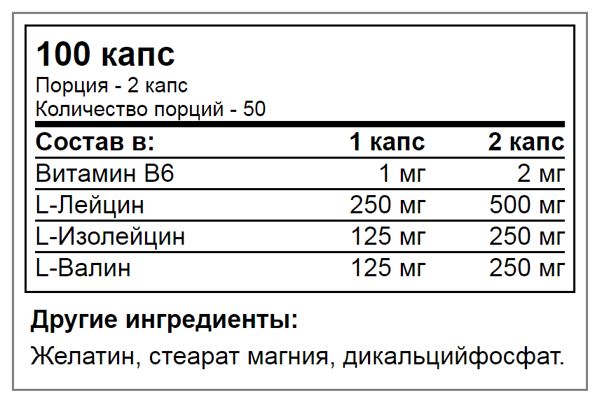 | Количество капсул/ таблеток | 100 |