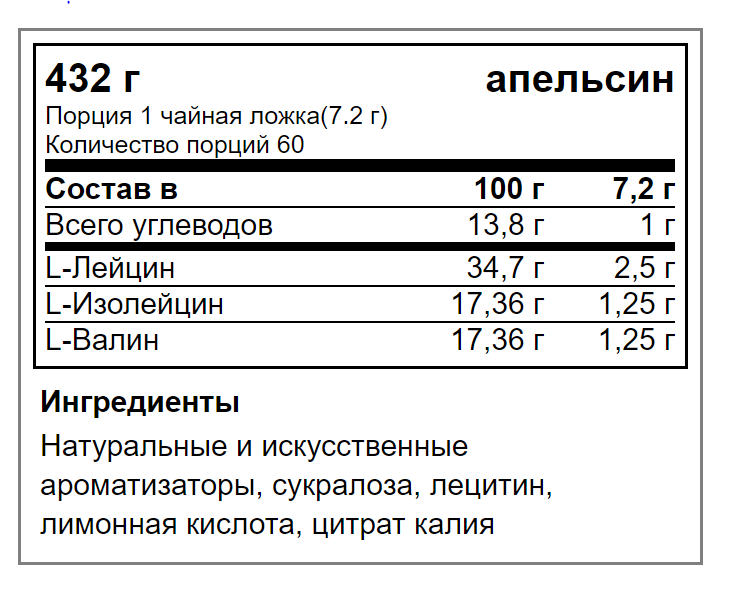 | L-Лейцин | 2,5 гр |